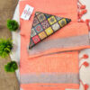 This saree measures 5.5 meters in length and 45 inches in width, accompanied by a matching blouse piece of 0.8 meters. Crafted from premium fabric, it offers elegance and comfort. Hand wash separately in cold water, avoid soaking over 5 minutes, and use medium iron for maintenance.