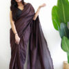 This saree measures 5.5 meters in length and 45 inches in width, accompanied by a matching blouse piece of 0.8 meters. Crafted from premium fabric, it offers elegance and comfort. Hand wash separately in cold water, avoid soaking over 5 minutes, and use medium iron for maintenance.