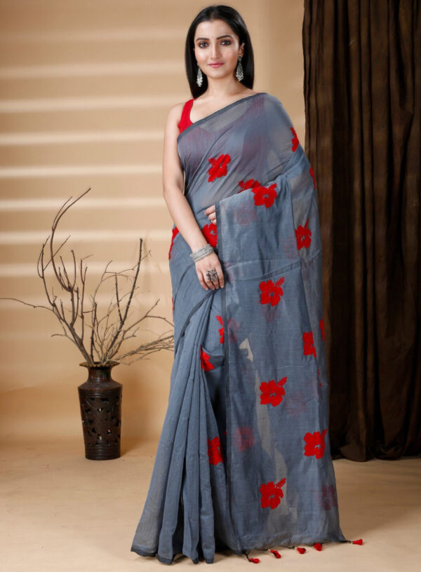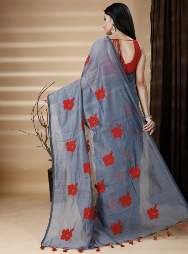This saree measures 5.5 meters in length and 45 inches in width, accompanied by a matching blouse piece of 0.8 meters. Crafted from premium fabric, it offers elegance and comfort. Hand wash separately in cold water, avoid soaking over 5 minutes, and use medium iron for maintenance.