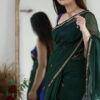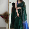 This saree measures 5.5 meters in length and 45 inches in width, accompanied by a matching blouse piece of 0.8 meters. Crafted from premium fabric, it offers elegance and comfort. Hand wash separately in cold water, avoid soaking over 5 minutes, and use medium iron for maintenance.