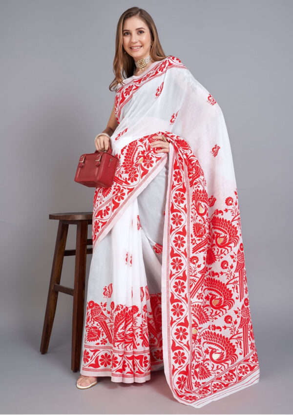 This saree measures 5.5 meters in length and 45 inches in width, accompanied by a matching blouse piece of 0.8 meters. Crafted from premium fabric, it offers elegance and comfort. Hand wash separately in cold water, avoid soaking over 5 minutes, and use medium iron for maintenance.
