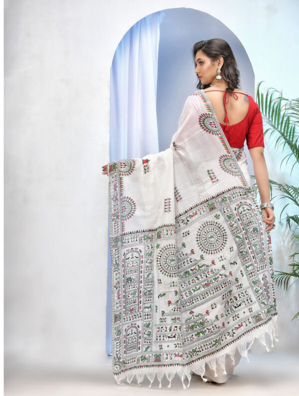 This saree measures 5.5 meters in length and 45 inches in width, accompanied by a matching blouse piece of 0.8 meters. Crafted from premium fabric, it offers elegance and comfort. Hand wash separately in cold water, avoid soaking over 5 minutes, and use medium iron for maintenance.