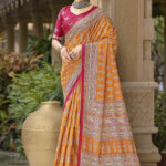 This saree measures 5.5 meters in length and 45 inches in width, accompanied by a matching blouse piece of 0.8 meters. Crafted from premium fabric, it offers elegance and comfort. Hand wash separately in cold water, avoid soaking over 5 minutes, and use medium iron for maintenance.