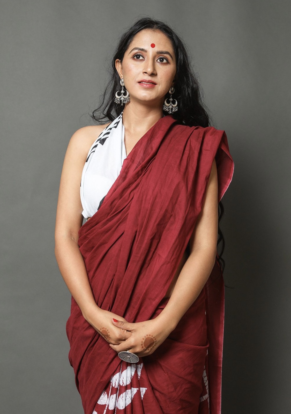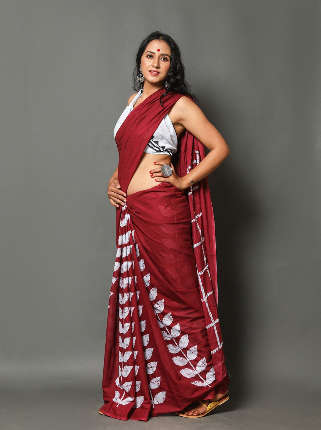 This saree measures 5.5 meters in length and 45 inches in width, accompanied by a matching blouse piece of 0.8 meters. Crafted from premium fabric, it offers elegance and comfort. Hand wash separately in cold water, avoid soaking over 5 minutes, and use medium iron for maintenance.
