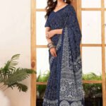 This saree measures 5.5 meters in length and 45 inches in width, accompanied by a matching blouse piece of 0.8 meters. Crafted from premium fabric, it offers elegance and comfort. Hand wash separately in cold water, avoid soaking over 5 minutes, and use medium iron for maintenance.