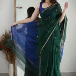 This saree measures 5.5 meters in length and 45 inches in width, accompanied by a matching blouse piece of 0.8 meters. Crafted from premium fabric, it offers elegance and comfort. Hand wash separately in cold water, avoid soaking over 5 minutes, and use medium iron for maintenance.