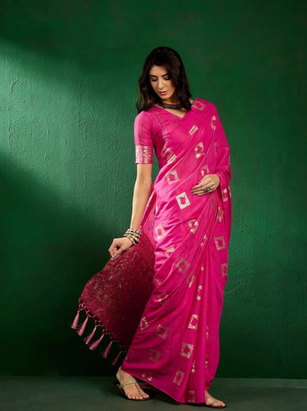 This saree measures 5.5 meters in length and 45 inches in width, accompanied by a matching blouse piece of 0.8 meters. Crafted from premium fabric, it offers elegance and comfort. Hand wash separately in cold water, avoid soaking over 5 minutes, and use medium iron for maintenance.