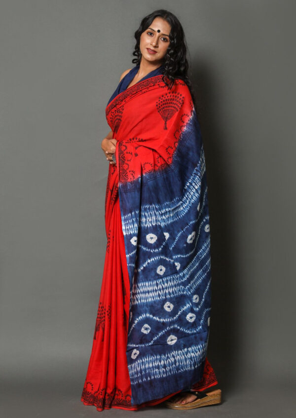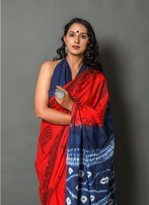 This saree measures 5.5 meters in length and 45 inches in width, accompanied by a matching blouse piece of 0.8 meters. Crafted from premium fabric, it offers elegance and comfort. Hand wash separately in cold water, avoid soaking over 5 minutes, and use medium iron for maintenance.