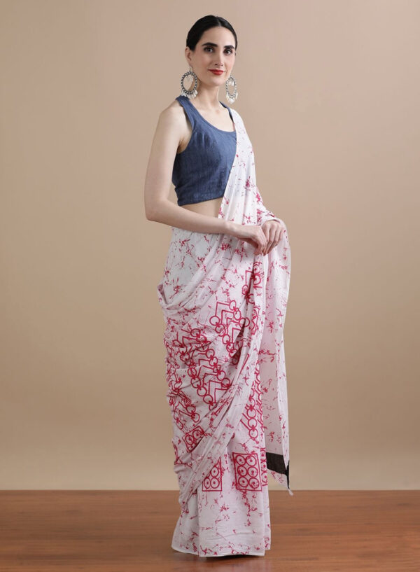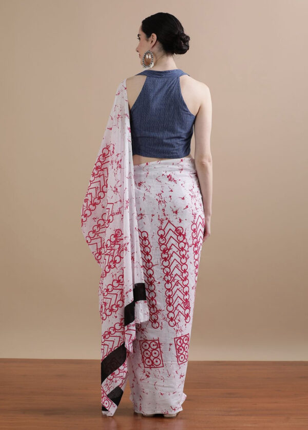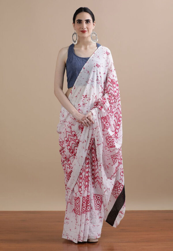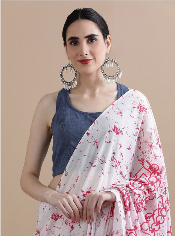 This saree measures 5.5 meters in length and 45 inches in width, accompanied by a matching blouse piece of 0.8 meters. Crafted from premium fabric, it offers elegance and comfort. Hand wash separately in cold water, avoid soaking over 5 minutes, and use medium iron for maintenance.