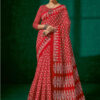 This saree measures 5.5 meters in length and 45 inches in width, accompanied by a matching blouse piece of 0.8 meters. Crafted from premium fabric, it offers elegance and comfort. Hand wash separately in cold water, avoid soaking over 5 minutes, and use medium iron for maintenance.