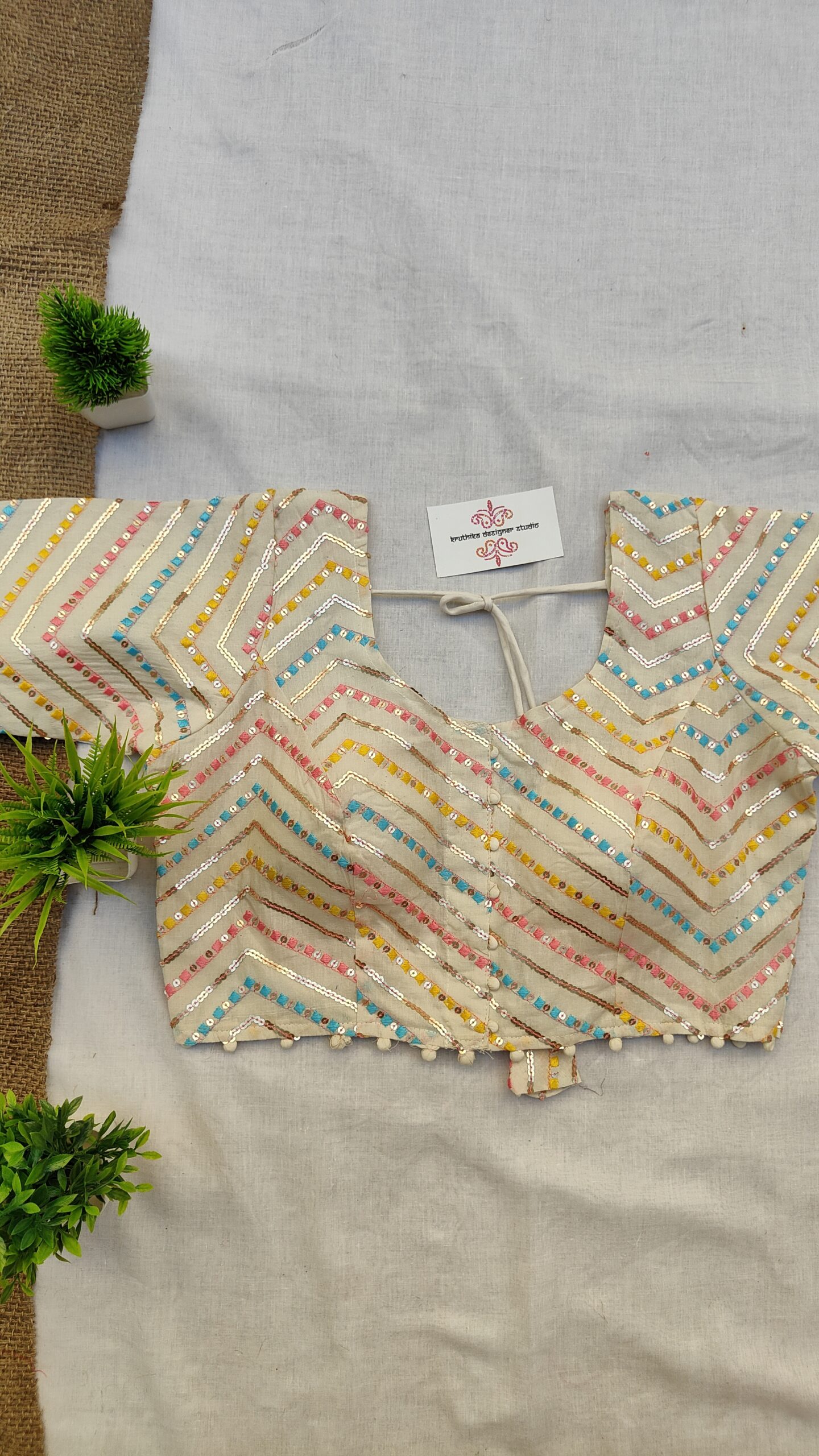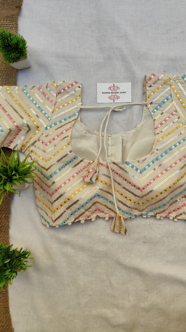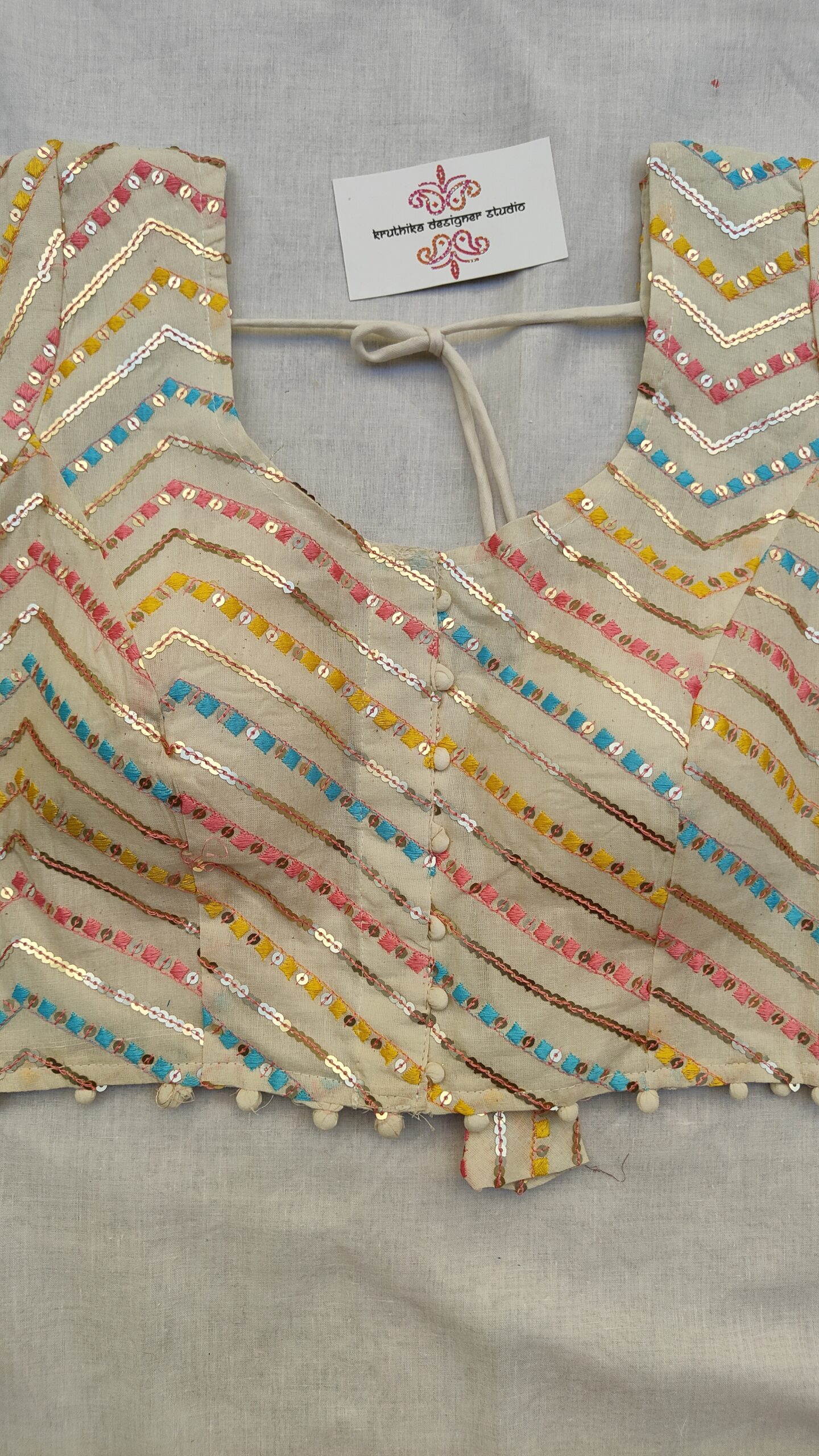 Disclaimer: Photos taken in daylight. Colors may vary slightly due to screen brightness. Unleash Your Style with kruthika Designer Studio Elevate your wardrobe with our exquisite handcrafted blouses—designed to blend elegance, individuality, and comfort. Each piece showcases the skill of our artisans through intricate embroidery and fine detailing, perfect for any occasion—from festive celebrations to casual outings. Crafted from high-quality materials, our blouses offer both a luxurious look and a comfortable fit. Celebrate your unique style with versatile, one-of-a-kind designs that pair effortlessly with sarees, skirts, or lehengas.