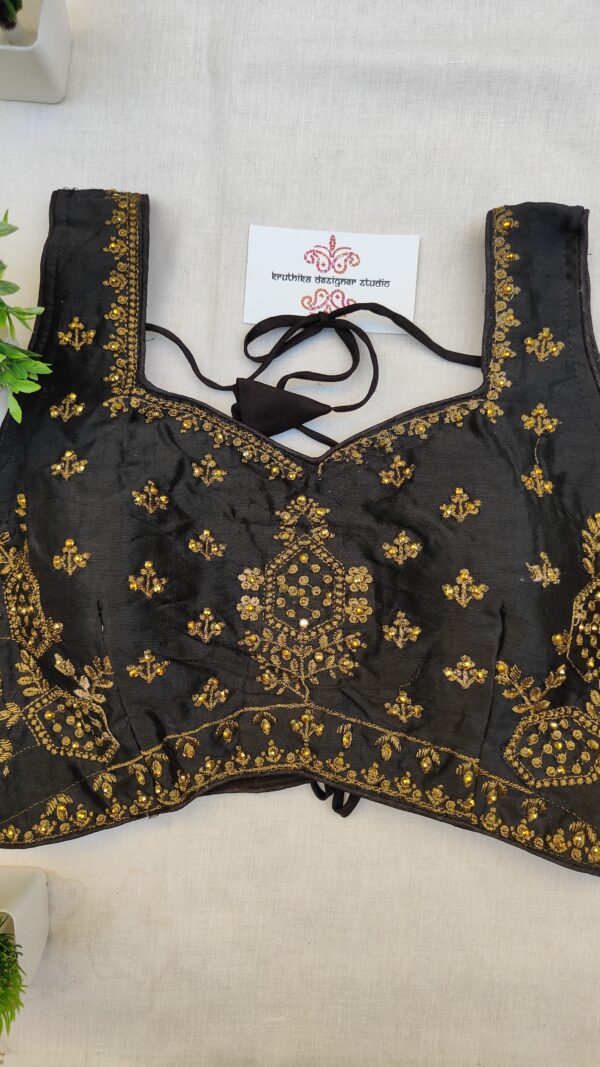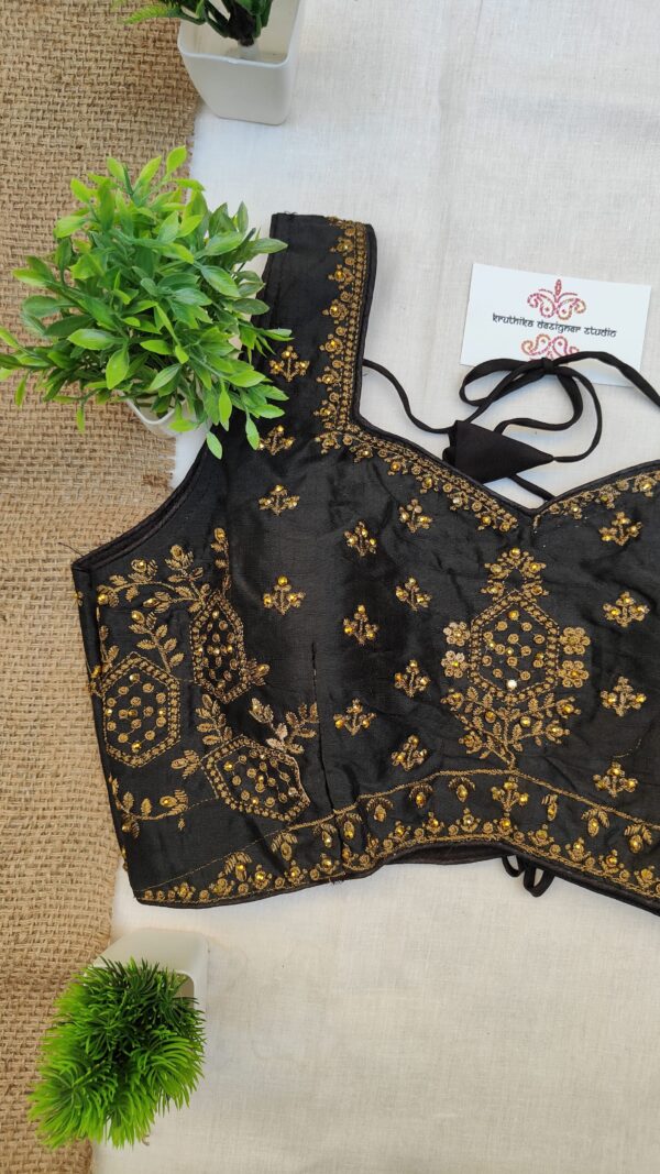Disclaimer: Photos taken in daylight. Colors may vary slightly due to screen brightness. Unleash Your Style with kruthika Designer Studio Elevate your wardrobe with our exquisite handcrafted blouses—designed to blend elegance, individuality, and comfort. Each piece showcases the skill of our artisans through intricate embroidery and fine detailing, perfect for any occasion—from festive celebrations to casual outings. Crafted from high-quality materials, our blouses offer both a luxurious look and a comfortable fit. Celebrate your unique style with versatile, one-of-a-kind designs that pair effortlessly with sarees, skirts, or lehengas.