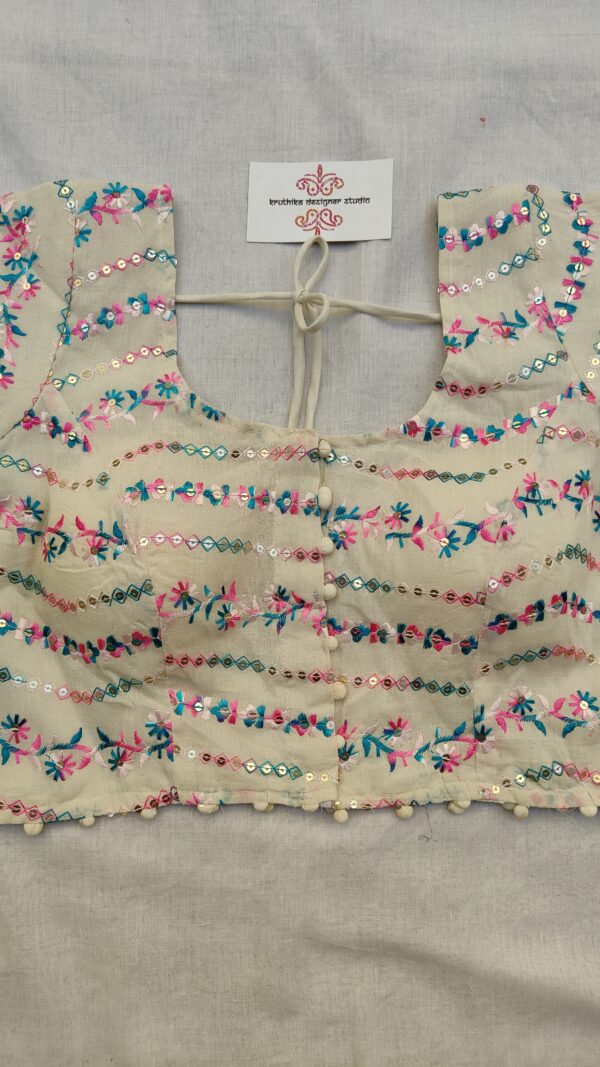 Disclaimer: Photos taken in daylight. Colors may vary slightly due to screen brightness. Unleash Your Style with kruthika Designer Studio Elevate your wardrobe with our exquisite handcrafted blouses—designed to blend elegance, individuality, and comfort. Each piece showcases the skill of our artisans through intricate embroidery and fine detailing, perfect for any occasion—from festive celebrations to casual outings. Crafted from high-quality materials, our blouses offer both a luxurious look and a comfortable fit. Celebrate your unique style with versatile, one-of-a-kind designs that pair effortlessly with sarees, skirts, or lehengas.