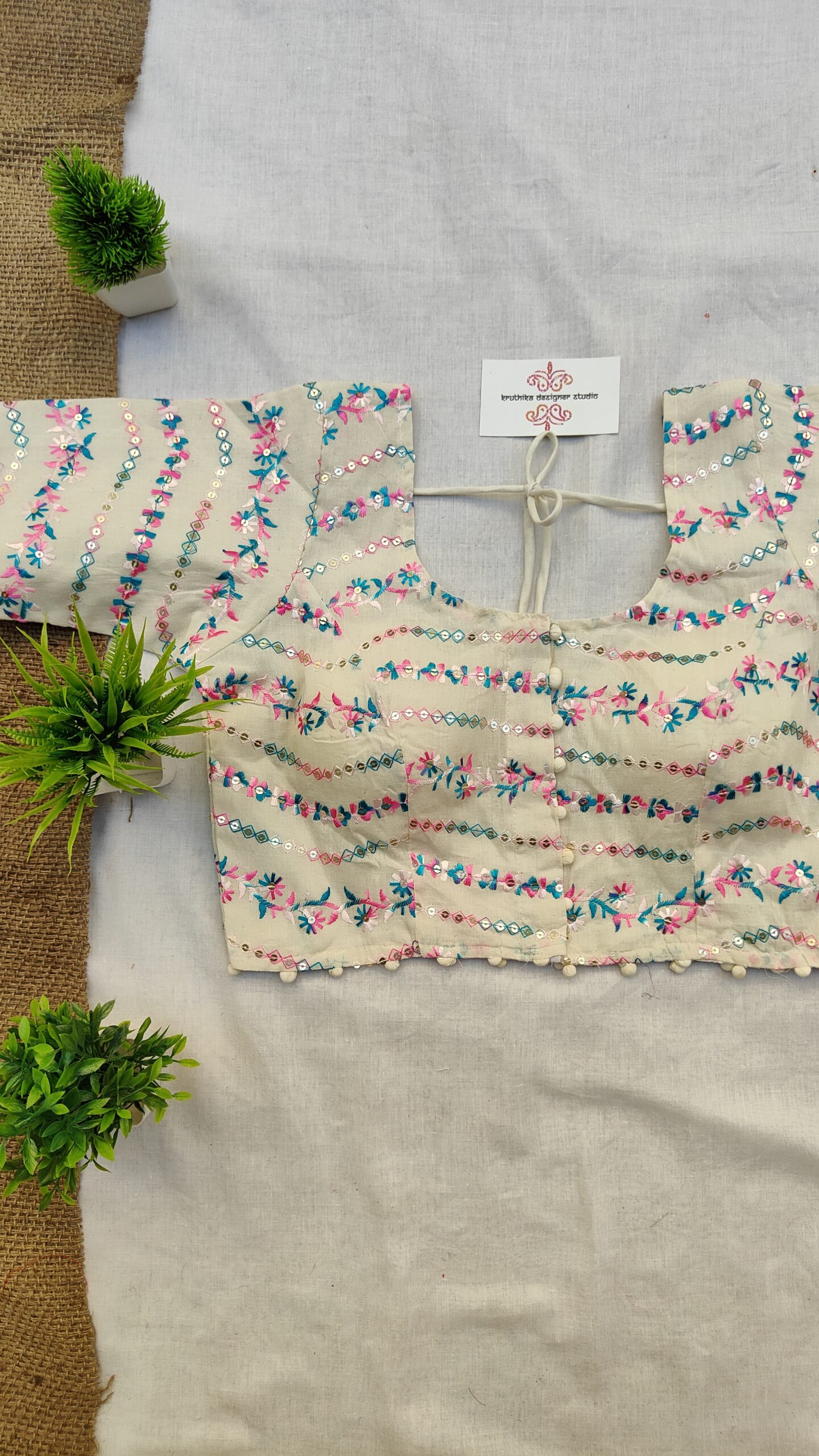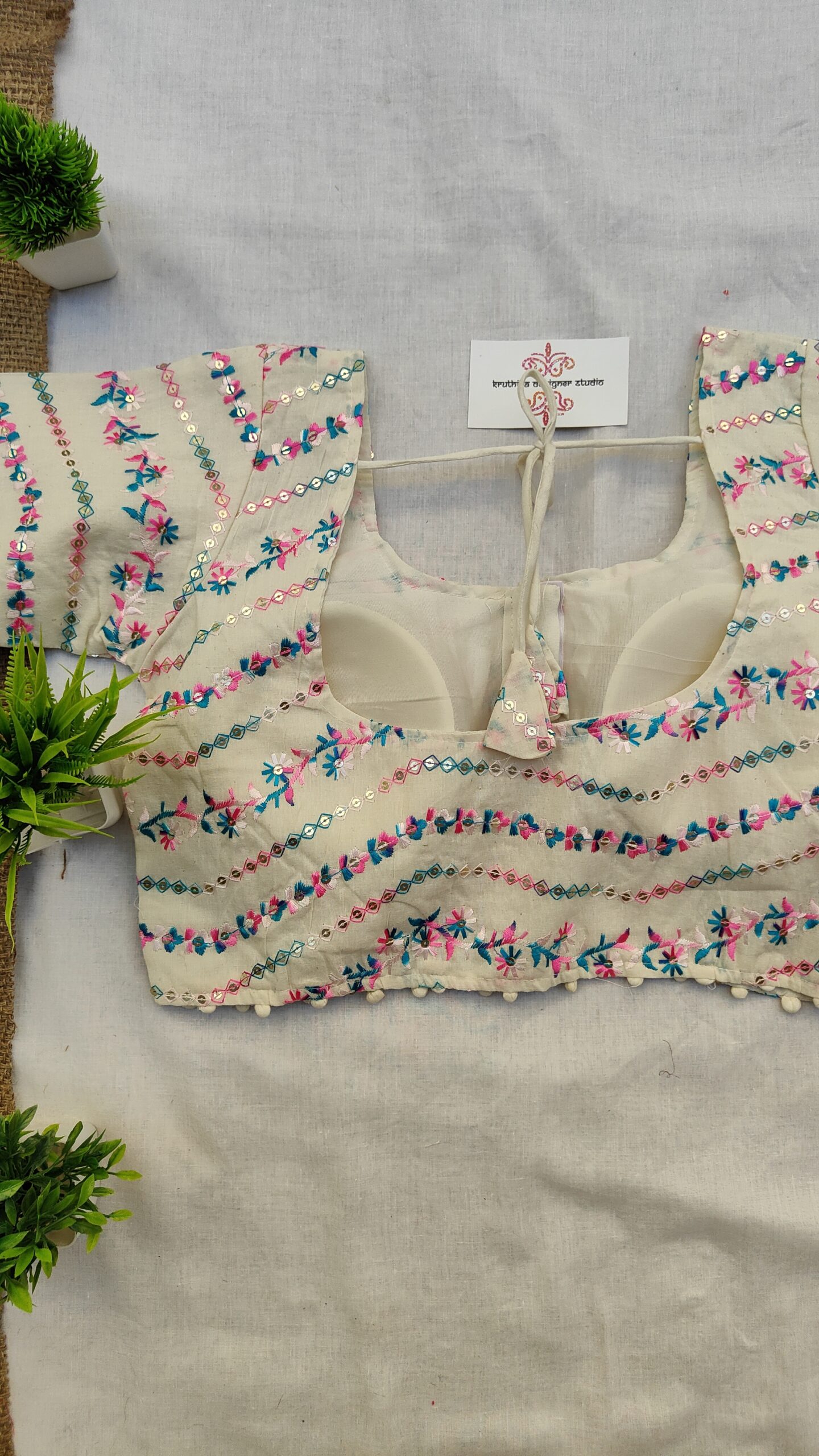 Disclaimer: Photos taken in daylight. Colors may vary slightly due to screen brightness. Unleash Your Style with kruthika Designer Studio Elevate your wardrobe with our exquisite handcrafted blouses—designed to blend elegance, individuality, and comfort. Each piece showcases the skill of our artisans through intricate embroidery and fine detailing, perfect for any occasion—from festive celebrations to casual outings. Crafted from high-quality materials, our blouses offer both a luxurious look and a comfortable fit. Celebrate your unique style with versatile, one-of-a-kind designs that pair effortlessly with sarees, skirts, or lehengas.